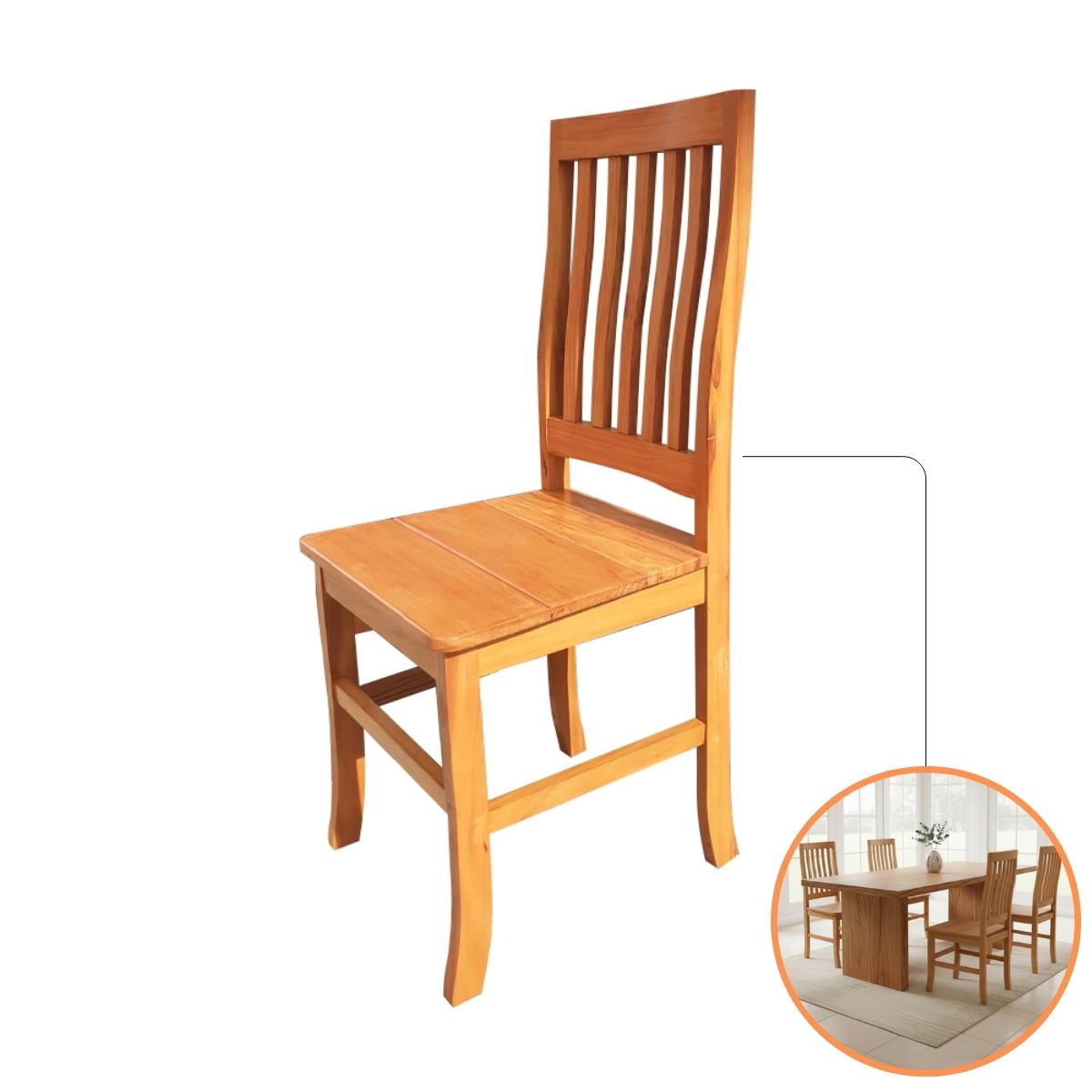 A Cadeira Style da NossaKasa eleva o padrão da decoração rústica. Com um encosto mais alto e ripas verticais que alongam a silhueta da peça, ela é ideal para compor mesas de jantar em ambientes que pedem um móvel com presença marcante e elegância rústica-chic.