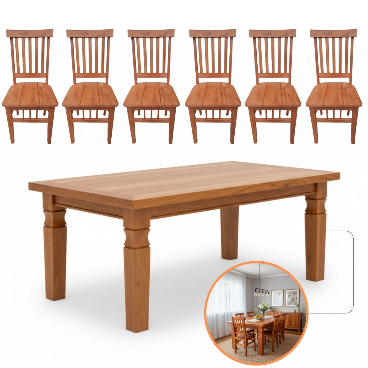 Conjunto Jantar Tradicional NossaKasa – Mesa Mineira 1,60m e 6 Cadeiras em Peroba Rosa Maciça