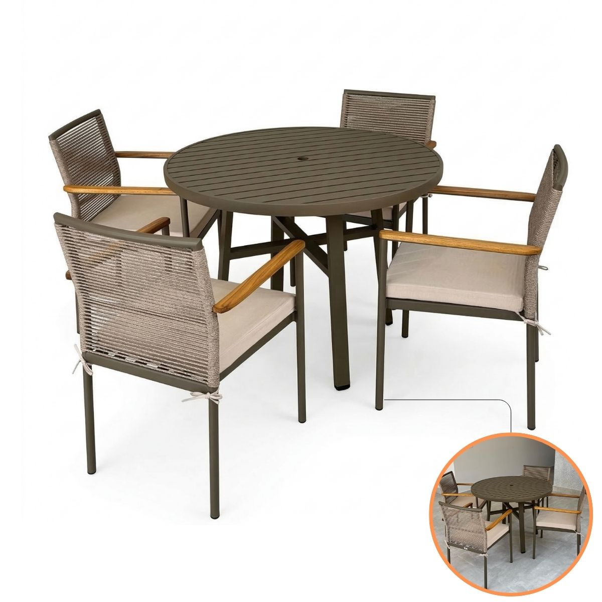 Conjunto Mesa de Alumínio Verona Premium e Poltronas Capri NossaKasa – Mesa em Alumínio, 4 Poltronas em Corda Náutica e Almofadas Impermeáveis
