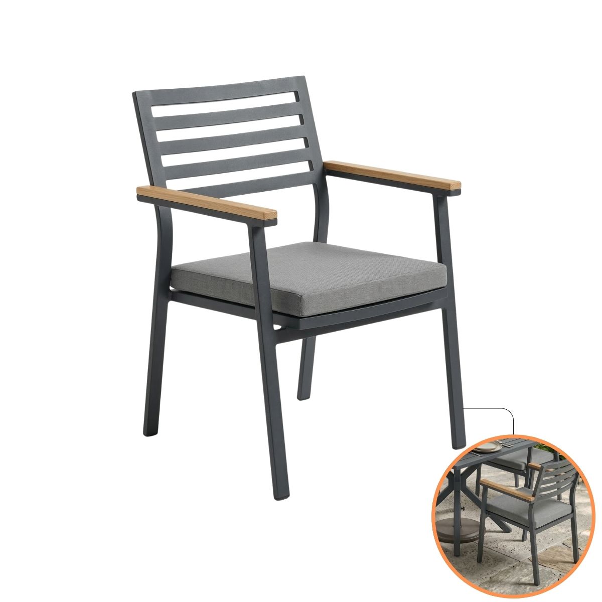 Poltrona Linea NossaKasa – Alumínio Ripado, Braço em Madeira Maciça e Assento Impermeável