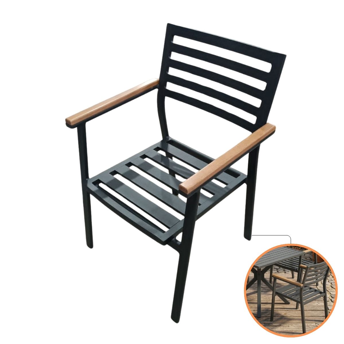 Conforto Térmico nos Braços: O acabamento em Madeira Maciça traz sofisticação tátil e evita o desconforto de apoiar os braços no metal aquecido pelo sol — um diferencial vital para o seu bem-estar.